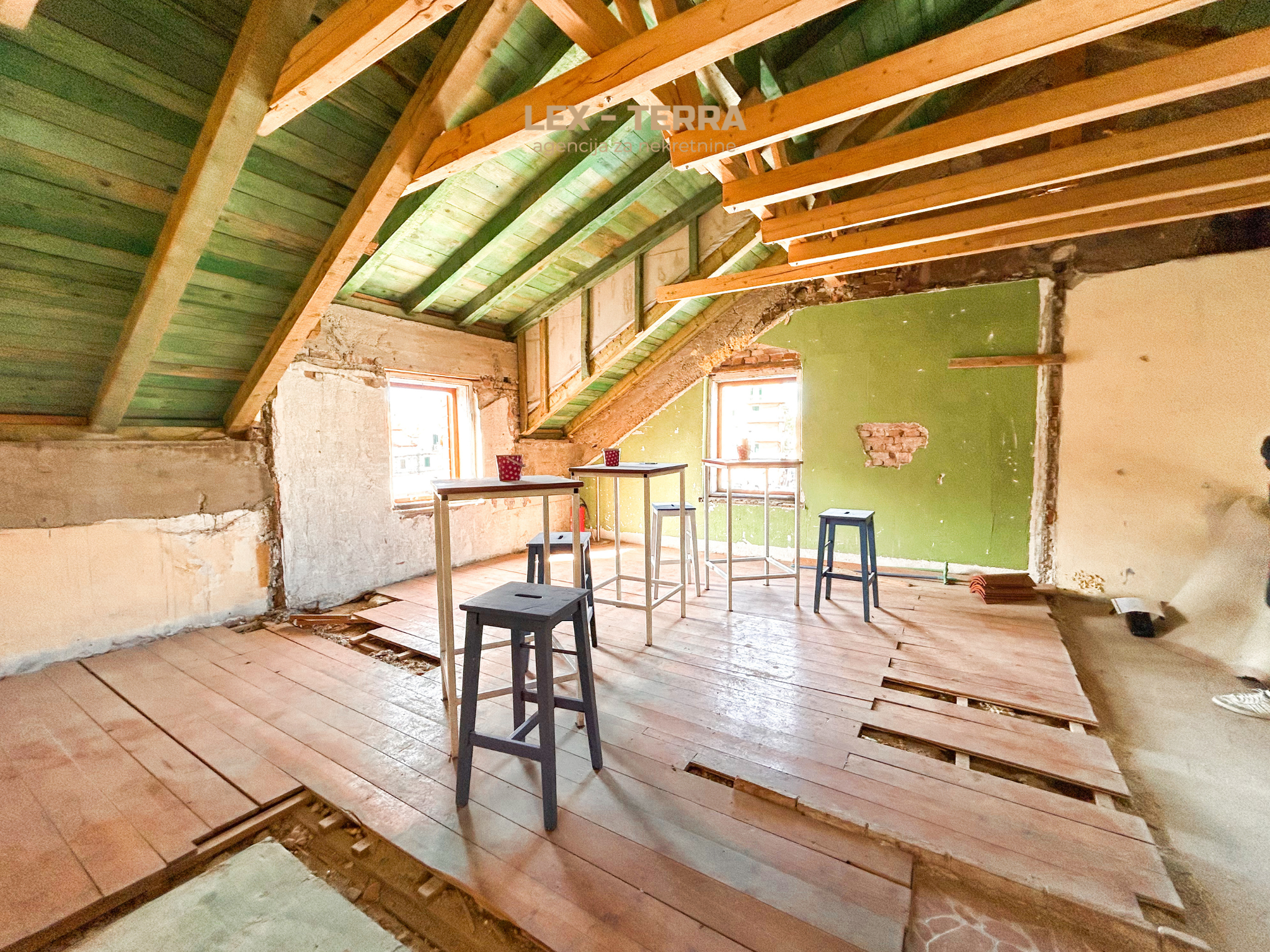 Na prodaju stan površine 55 m² korisne površine (tlocrtno 64 m²), smješten na 2. katu / visokom potkrovlju manjeg stambenog objekta u samom centru Splita, u neposrednoj blizini HNK-a.