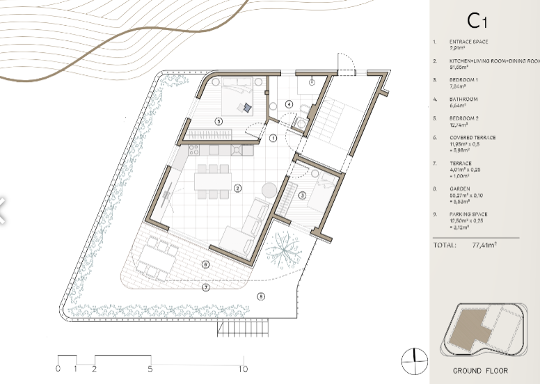 Stan C1 dizajniran je za kupce koji traže udobnost, privatnost i vezu s prirodom.