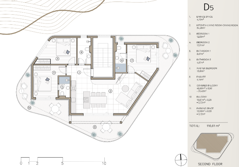 Predstavljamo stan D5, ekskluzivni trosobni penthouse smješten na drugom katu luksuzne novogradnje VALI 4 u Rogoznici.