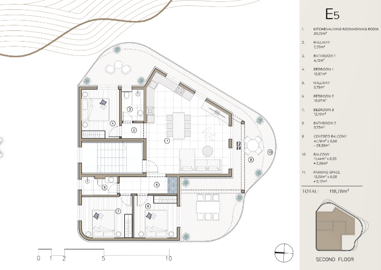 Predstavljamo stan E5, ekskluzivni trosobni penthouse smješten na drugom katu luksuzne novogradnje VALI 5 u Rogoznici.